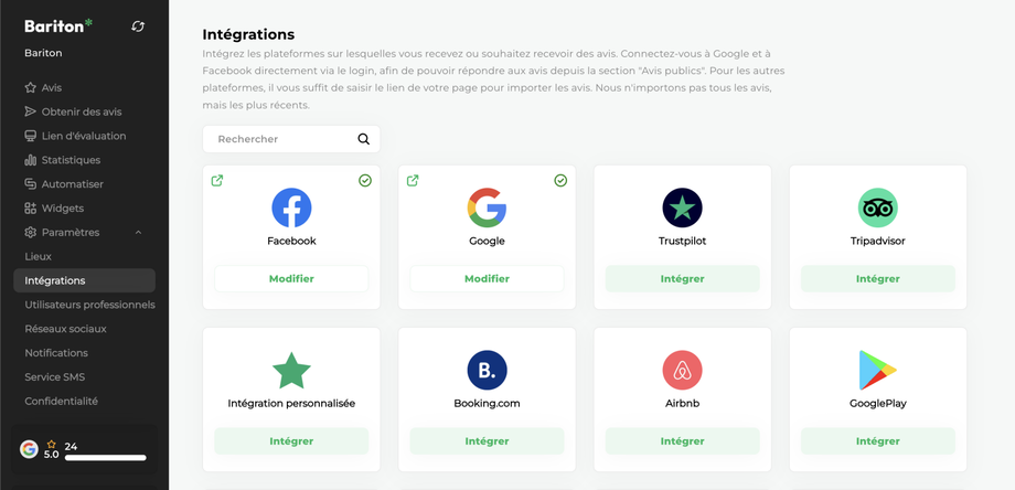 Les nouveaux avis publiés sur les plateformes intégrées apparaissent automatiquement dans votre tableau de bord à intervalles réguliers.