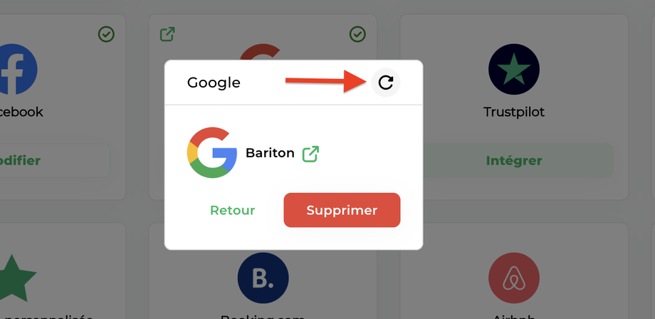 Si nécessaire, il est possible de forcer la mise à jour d’une plateforme d’avis spécifique en suivant ces étapes :